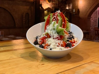 Balkanlara özgü mevsim sebzeleri, közlenmiş biber ve rendelenmiş peynirin harika buluşması.