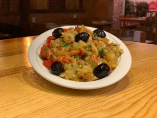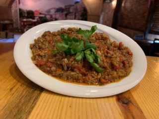 Taze patlıcanların kızartılarak yoğurtla servis edildiği aheng
