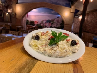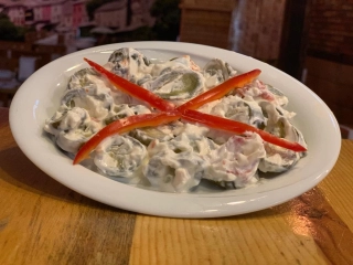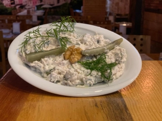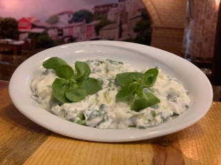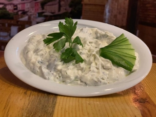 Bir meze klasiği, sarımsak yoğurt ve otların lezzetli uyumu.